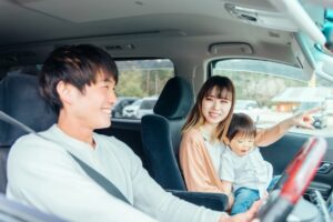 景色を眺めながら家族3人で